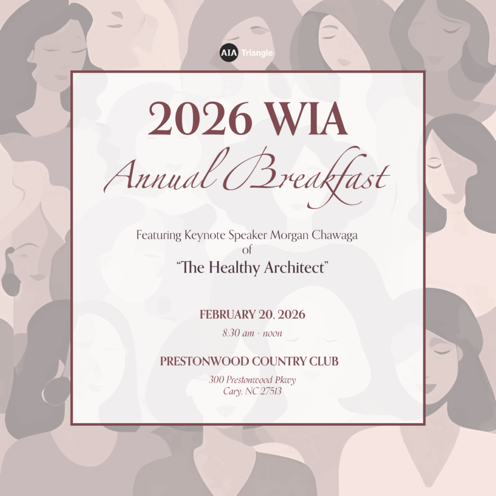| 4th Annual Women in Architecture Breakfast Featuring Morgan Chawaga of “The Healthy Architect”Friday, February 20, 2026 8:30 AM – 12:00 PM Prestonwood Country Club | 300 Prestonwood Pkwy Cary, NC 27513 2 LUTickets Members – $50 | Non-Members – $80 Tickets are now SOLD OUT. To be placed on a waitlist and notified if tickets become available, please email us. Students – Are you a student interested in attending? Contact us to get on a waitlist for complimentary, sponsored tickets.