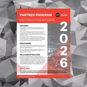 Partner with AIA Triangle and build relationships, strengthen brand recognition, and position your company in front of architects and designers through this comprehensive package of benefits.