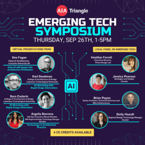 At AIA Triangle TAP, we explore emerging technologies that are transforming architecture and design. We aim to inspire architects, AIA members, and the public by showcasing innovative tools and workflows that enhance the way we practice. Through open dialogue and shared discovery, we collaborate on turning cutting-edge technologies into practical solutions for the built environment.